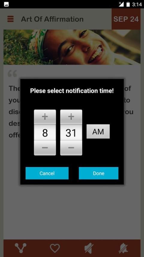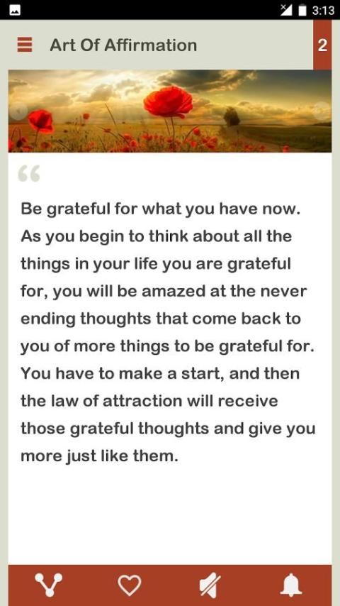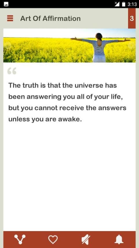 Art Of Penegasan Harian membawa kebijaksanaan kepada Anda dalam bentuk Mobile App, bangun setiap hari, dengan mengubah hidup Afirmasi, mulai hari ini.