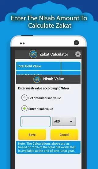App juga terdiri dari tab nisab mana nisab adalah jumlah kekayaan yang membuat seseorang bertanggung jawab