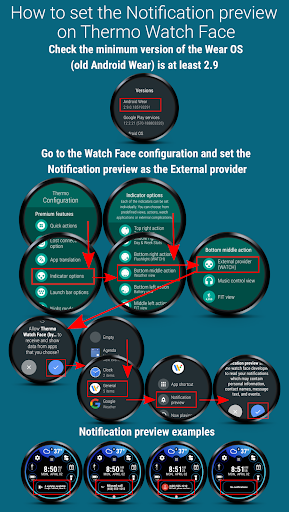 > Situs Anda juga dapat mengatur 7 indikator kecil atau 5 besar untuk tampilan, tindakan, atau pintasan aplikasi arloji yang telah ditentukan. Anda dapat mengatur juga satu indikator lingkaran memanjang untuk teks yang lebih besar. Thermo watch face dibangun untuk menggunakan setiap hari, itu menyederhanakan banyak kasus penggunaan seperti meluncurkan program, mengatur kecerahan dan mendengarkan musik.