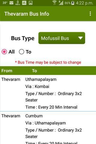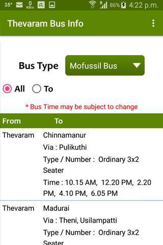 Aplikasi ini menyediakan semua informasi tentang Thevaram Mofussil bus dan Kota bus.