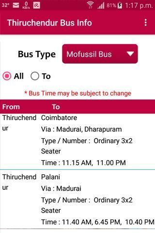 Aplikasi ini menyediakan semua informasi tentang Thiruchendur Mofussil bus dan Kota bus.