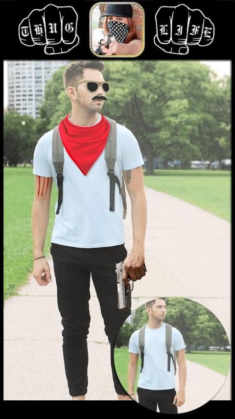 ☑ Yo homies, check out this photo editing app for AndroidTM. ‘‘Edit photos’’ like a pro and try out best collection of amazing stickers for pictures. Add some bling, put high fashion glasses, dope clothes or some other cool sticker on photo. Transform your average pictures into perfect gangster images with a just few clicks! Show the real ‘‘thug life’’ through your photos and let your pics ooze the bad boy attitude. Turn yourself into dude from the hood thanks to ✬Thug Life-Edit Photos✬. Make an amazing photo montage with a help of one of the best apps for Android. A wide range of thug ‘‘photo stickers’’ are available for you to try them on!