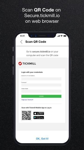 Tickmill Authenticator menyediakan lapisan keamanan tambahan saat masuk.
