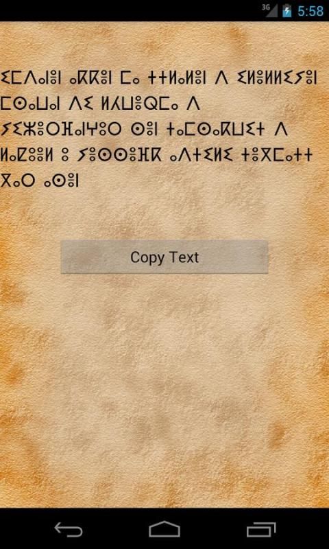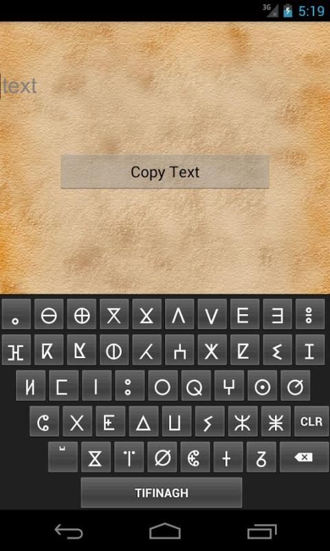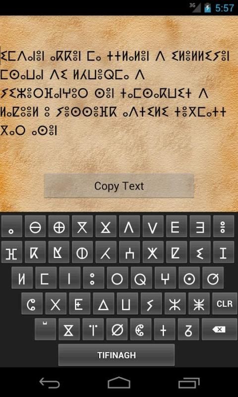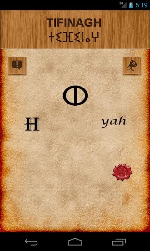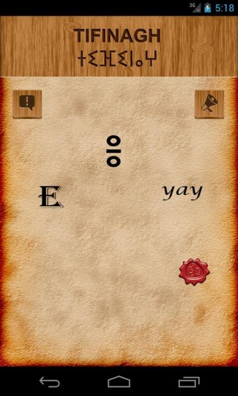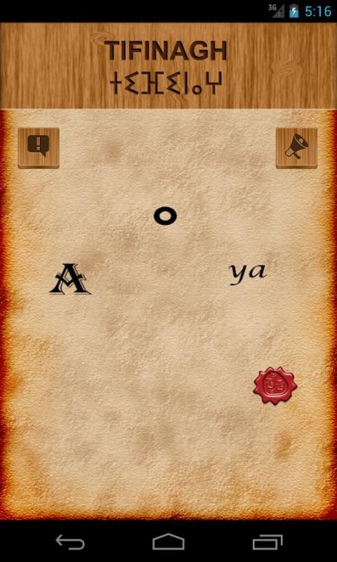 Aplikasi ini dibuat untuk belajar Tifinagh, yang telah tersedia huruf dan pengucapan setiap huruf dan keyboard virtual untuk menulis teks Tifinagh.