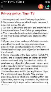 Penerapan harimau, mudah dan jelas dan memiliki kebijakan privasi kami mematuhi dan mematuhi Google dan Google Play kebijakan, aplikasi termasuk saluran TV gratis, cocok untuk anggota keluarga, bebas dari saluran berbahaya setiap sepenuhnya.