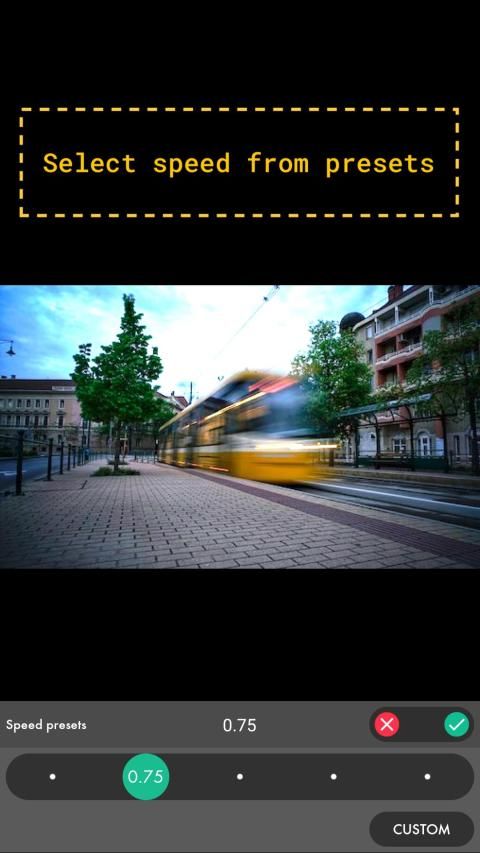 - Speed options: Easy to choose from speed presets. It also provide you advanced option to custom speed, included of two modes: slow motion (stop motion) & time lapse (up to 32x)