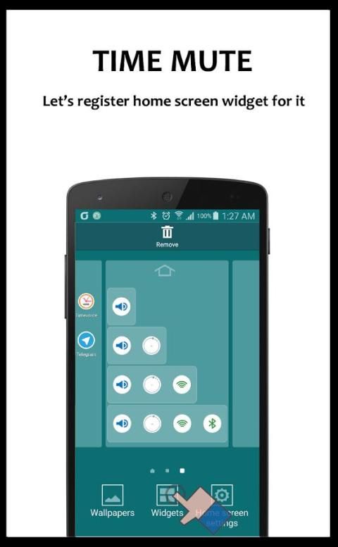 1. Desktop> Long-klik tombol> Widgets> menemukan ikon Waktu Mute pada daftar