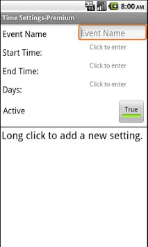 Time Settings allows you to define events, days and times, when you want to change you phone settings.
