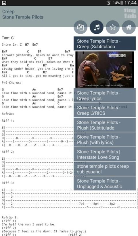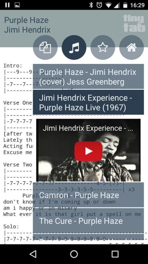 Cukup ketik nama lagu dan artis untuk melihat hasil tab terbaik dalam format txt seperti bersama-sama dengan hasil youtube sehingga Anda dapat bermain bersama.
