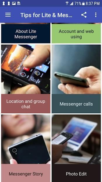 The tips collected in this Messenger Lite are created to teach the users all the settings of the Lite Messenger 2018. This tips list will show you how to use Messenger Video, Messenger Lite Call and Messenger Lite Recovery. You just need to download this Lite Messenger and start to use Lite Messenger Quick. Also in this tips and tricks guide you will find and information about Messenger Lite Emoji. These tips can be used both - Messenger Lite Latest Version and Messenger Lite Old Version. Don’t forget that messenger lite new works also with no internet, so the Messenger lite Offline is also available for using. So, don’t waist the time, update you messenger lite and start to use messenger SMS, messenger text, messenger recording, lite Messenger FREE