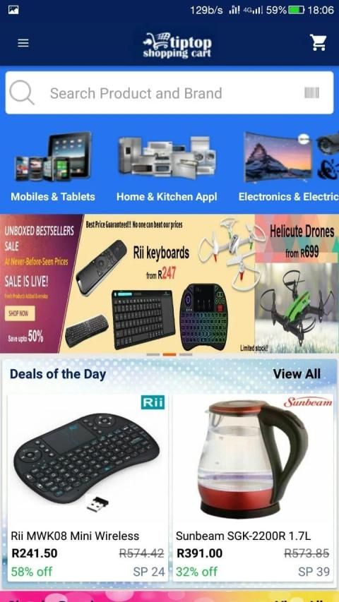 Tiptop mobile app makes "Online shopping" quick and convenient for online users in South Africa. With our innovative & dedicated online solutions, we offer the best services to our valuable online shoppers. With just one fingerprint login, you can explore a wide range of products at the lowest prices guaranteed.