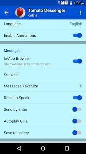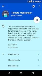Tomato Messenger is a communication app that allows you to chat with people in the world for free. You can either choose to chat with your friends or find new people to chat with. Tomato Messenger makes chatting with friends more interesting and are a fun way to break the ice when meeting new people. Tomato Messenger is a Fast, Secure, Hyper Efficient FREE messaging app for Android and other smartphones. Tomato Messenger uses your phone's Internet connection to let you message and call friends and family. Switch to Tomato Messenger to send and receive messages, calls, photos, videos, documents, and Voice Messages.