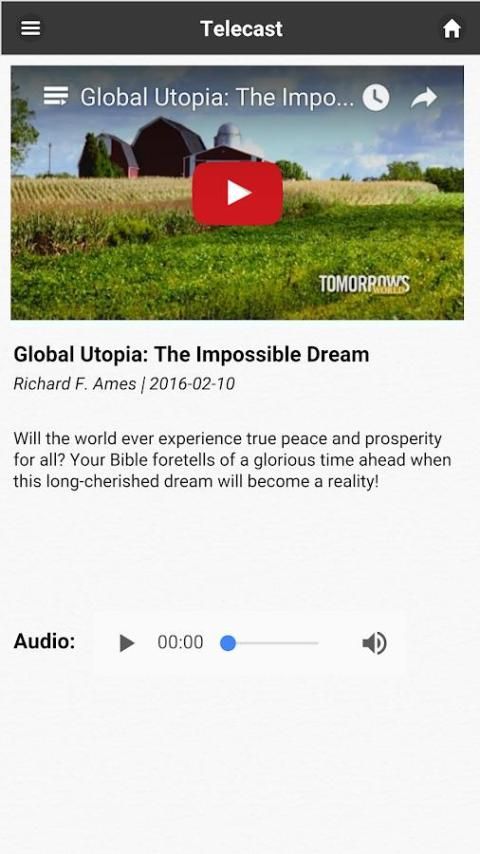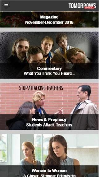 aplikasi seluler Dunia besok adalah aplikasi gratis untuk komentar Kristen dan artikel, tinggi-res Alkitab dan video yang nubuatan, dan perpustakaan buku Kristen yang luas. Aplikasi ini juga berisi kalender semua Alkitab Tahunan Hari-hari Kudus dan memungkinkan Anda untuk mengatur pengingat matahari terbenam untuk hari Sabat mingguan. Besok Dunia menyatakan Kabar Baik - Injil yang sejati dari Kerajaan Allah yang akan datang, menjelaskan berita dan ramalan tren, mengajarkan agama Kristen asli dan seluruh nasihat Allah, mengajarkan kasih Filadelfia terhadap Allah dan sesama, dan memberikan jawaban Alkitab yang nyata. Ratusan ribu pembaca. Didukung oleh puluhan ribu orang Kristen dari seluruh dunia. Tanpa iklan. Selalu gratis.