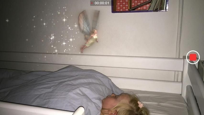 The Tooth Fairy is shown in real-time, as you record. You can follow her with the camera, as she flies about in your home.