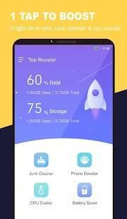 Top Booster is an optimization tool with booster, space cleaner and CPU cooler, which can keep your phone to run faster, cleaner and smoother.