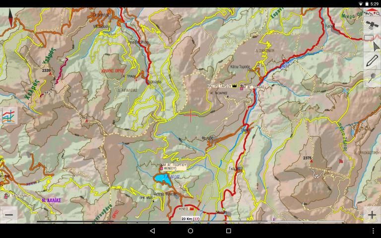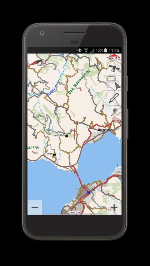 • Offline ubin peta men-download & caching (termasuk Yunani kadaster foto udara, OSM, Google & Bing Maps) pada memori internal atau eksternal (kartu micro SD)