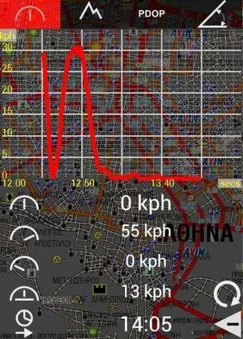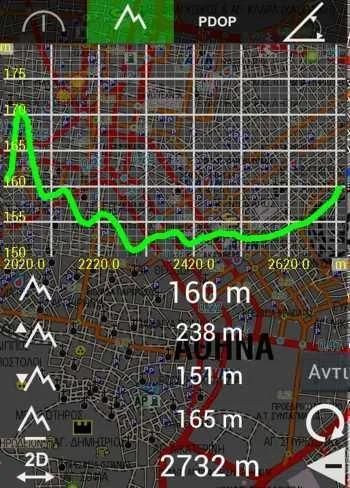 • Tempat & garis digital pada layar (off GPS fix) mendapatkan nilai elevasi dari 30m sel akurasi tinggi Digital Elevation Model (DEM saat ini server berbasis dan hanya mencakup Yunani).