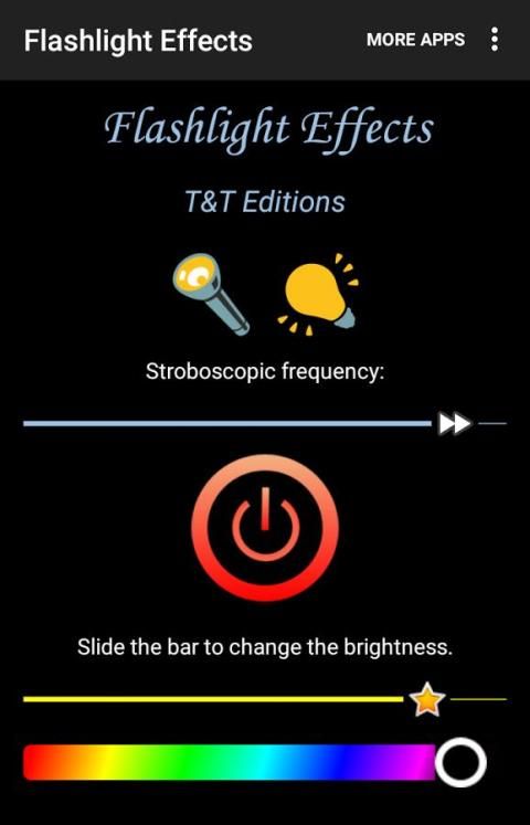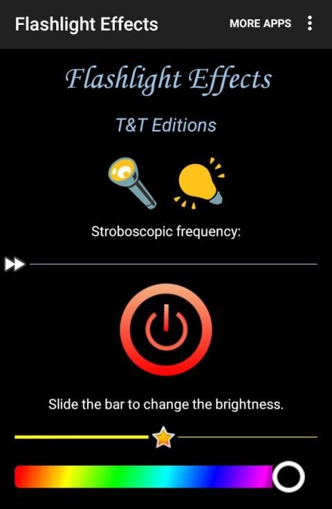 Flashlight Effects launched recently is currently the best flashlight app on Google Play. Indeed, it can obviously turn your smartphone or tablet into a powerful torch light but it also incorporates special effects of last generation. You can use the strobe light effect (stroboscopic), vary the color of the background and even change the brightness of the screen. Unlike its competitors, the flashlight stays on when you return to the main menu ("home" button) and turns off if you click on the back button. You can then continue to use the torch light using another application.