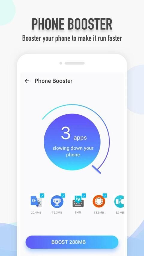 By total cleaner, this free Android memory (RAM) booster will clean unnecessary background apps to clear more free memory and make your phone faster. The one-tap boost optimize your Android device and make it faster by 50% on home-screen.