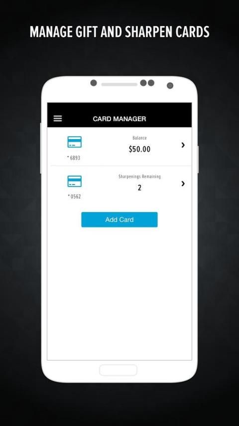 - Tambahkan kartu hadiah atau meluncur mempertajam kartu ke akun Anda. Tidak perlu membawa mereka sekarang. Hanya memindai kode bar dan pergi!