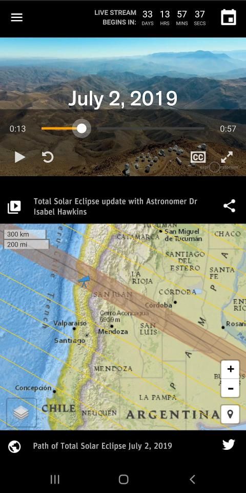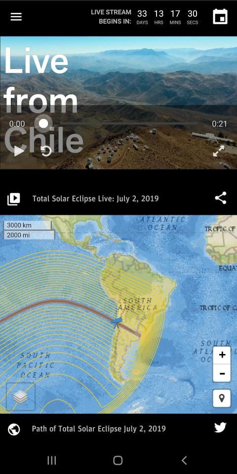 • Follow the conversation on Twitter using #eclipse2019, #eclipse2020, #solareclipse, and #totalsolareclipse in the app's Twitter View and share your tweets about the eclipse.