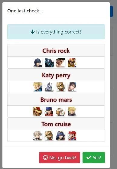 Use this app to build tournaments selecting all the characters available since the first Super Smash release! And yes, all the new characters for Super Smash Ultimate are here!