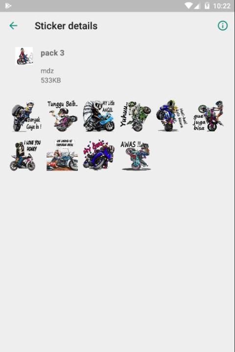 Halo para bikers dan trabas mania.Kini ada kabar gembira buat kalian pecinta motor karena kami telah merilis sebuah aplikasi baru dengan judul trabas lur sticker.Di dalam app ini terdapat banyak sekali sticker bertema motor,dari motor trail,motor cross,motorsport hingga moge.Dari motor jadul hingga modern seperti CB Harley Ninja ikut meramaikan koleksi sticker di dalam app ini.Jadi buat kalian anak trabas atau yang suka nge track nyari jalan trabas dan touring wajib punya sticker ini.
