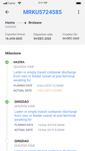 Pelacakan Kontainer Online dengan Sangat mudah saat Anda dapat melacak pengiriman berkelanjutan saat bepergian dan mendapatkan pembaruan tentang kargo Anda yang akan dikirimkan pada tujuan yang Anda inginkan. Aplikasi Tracking Freight gratis untuk diunduh dengan Add on Paket. Dengan mengunduh aplikasi pelacakan pengangkutan online gratis di ponsel atau tablet Android Anda, Anda dapat dengan mudah melacak wadah lebih dari 20 jalur pengiriman termasuk Maersk, Safmarine, CMA CGM, HAPAG LLYOD, MSC, OOCL, ZEVO, Hamburg Sud .