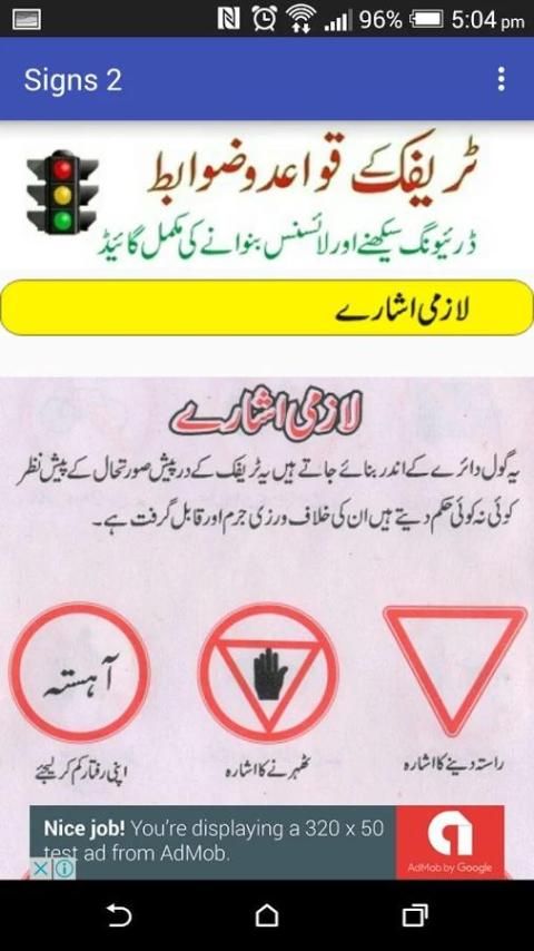 ٹریفک سائن اینڈ ڈرائیونگ لرننگ اپلیکیشن اردو زبان میں.