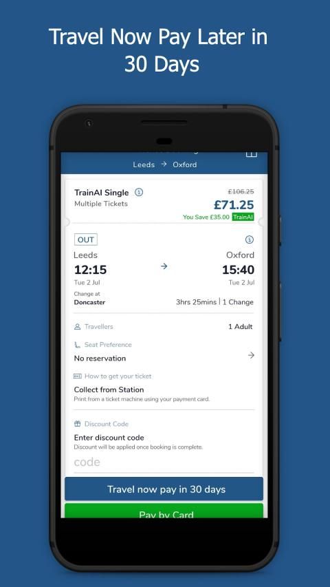 TrainAI is the only train ticket booking app that offers Travel Now Pay Later.