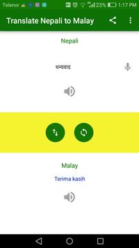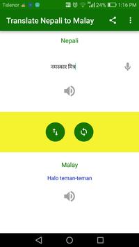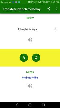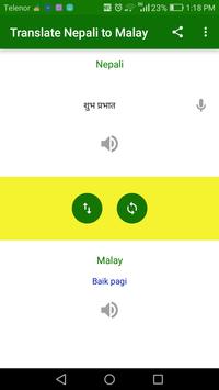 Translate Nepali to Malay and Malay to Nepali with this FREE app. It can translate text, words and sentences in split seconds. It is like a dictionary and used for words meaning and accurate pronunciation.