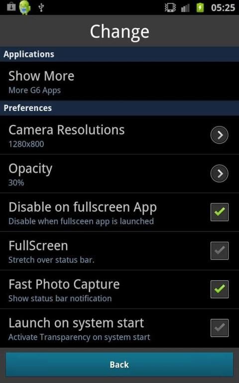 App transparansi sangat dioptimalkan dalam kamera render dari aplikasi layar transparan lainnya dengan menggunakan sumber daya yang lebih rendah dan memori.