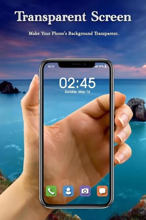 Membuat ponsel Anda transparan dan pengalaman real-time sinkronisasi pada layar dengan adegan di balik telepon Anda. Anda dapat menggunakan telepon seperti biasa, menikmati pemandangan indah, dan pengalaman yang berbeda menyenangkan!