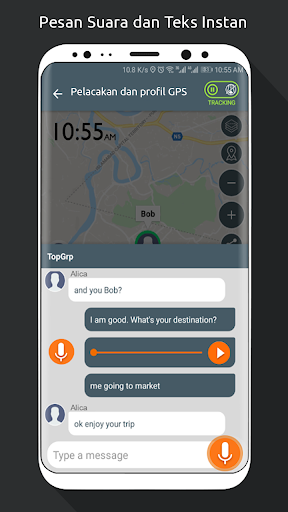 🔹Penyediaan perpesanan (suara & teks) baik perorangan maupun grup saat melacak.