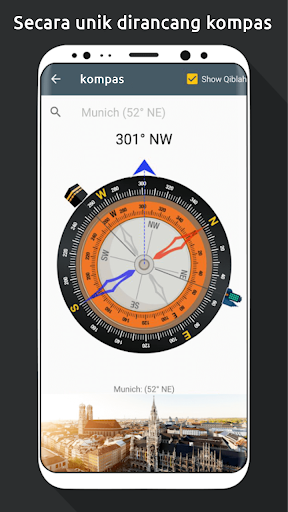 Kompas akan menampilkan arah dan derajat pada layar. Perangkat harus memiliki sensor kompas.