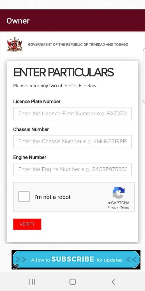 • Check the owner of the vehicle utilizing two of the three (Licence Plate, Chassis # or Engine#)