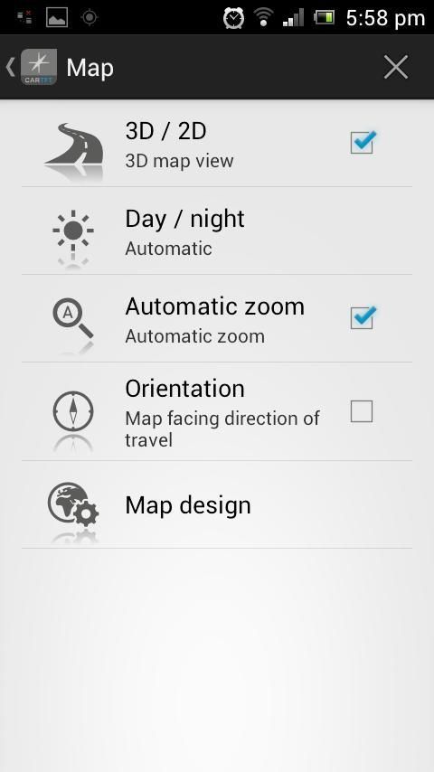 • 2D dan 3D navigasi dengan peta yang jelas berorientasi pada arah perjalanan atau Utara