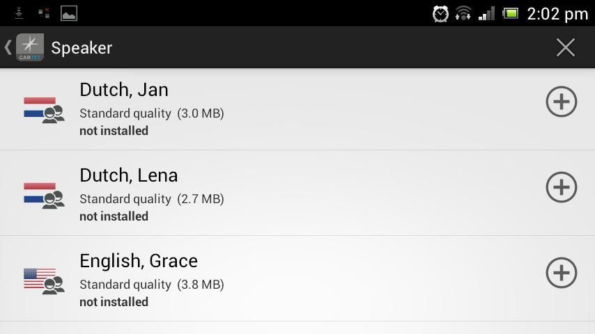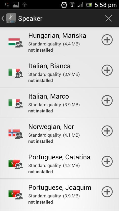 • speaker Text2speech tersedia untuk bahasa-bahasa ini: Ceko, Denmark, Belanda, Inggris, Prancis, Jerman, Hungaria, Italia, Norwegia,