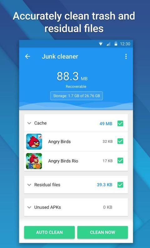1. Storage cleaner - Clear app cache, clean junk files from apps and remove unused APKs.