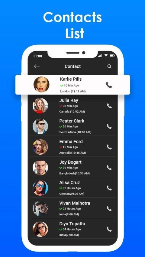 ❏ View Recent Call Log/ Phone Book Contacts with geographic location (at Country/State/City level).