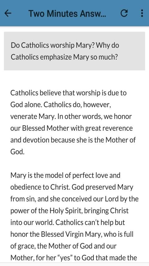 Apakah Anda bosan dengan pertanyaan konyol seperti - Mengapa umat Katolik menyembah Maria? atau yang lebih masuk akal seperti - Apakah Yesus Tuhan? - dan entah bagaimana Anda tidak bisa menjelaskan pendirian Anda dengan meyakinkan, di situlah aplikasi ini masuk. Semuanya sudah dibahas