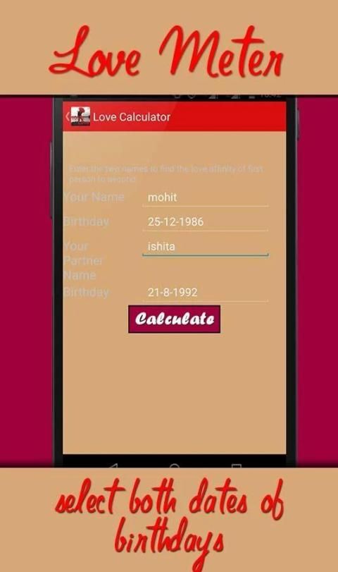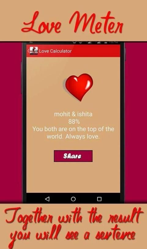 Cukup, Cinta kalkulator adalah sebuah aplikasi yang memungkinkan Anda untuk memeriksa tingkat kompatibilitas yang Anda berbagi dengan pasangan Anda.