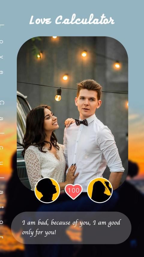 Ini adalah Aplikasi yang menyenangkan dan dengan cara yang sangat menarik memungkinkan Anda tahu seberapa kuat intensitas cinta sejati dalam hubungan Anda. Kalkulator Cinta Sejati kami mudah dioperasikan dan menyenangkan untuk digunakan.