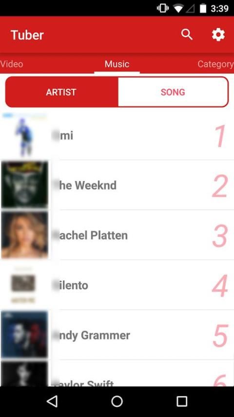 You can choose favorite songs at the music category and TOP 100 songs and artists.
