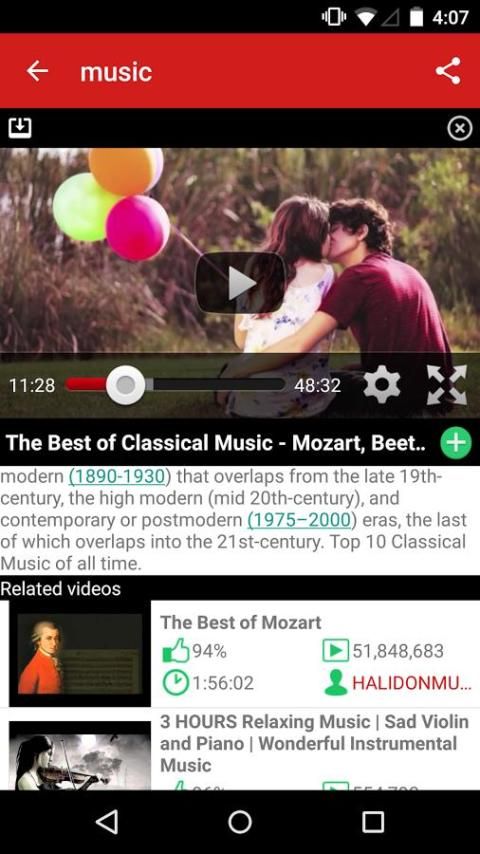 Watch youtube videos and listen music video!