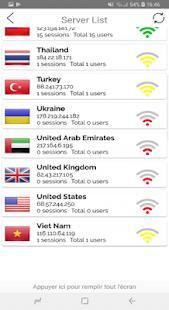 Crypte des données utilisant des protocoles OpenVPN (UDP / TCP).- Provide global VPN servers network(USA, UK, Japan, Singapore, Germany, Australia,France,Netherlands,Canada, India, etc)