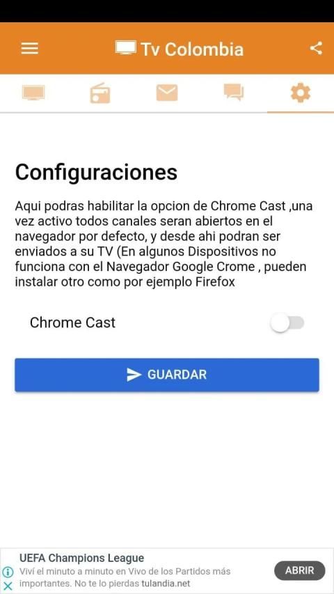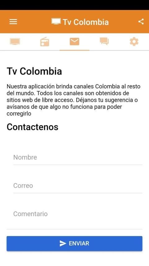 Jika Anda ingin kami menambahkan saluran TV atau RADIO dari Kolombia yang Anda sukai, lakukan dari bagian Hubungi kami dari Aplikasi.