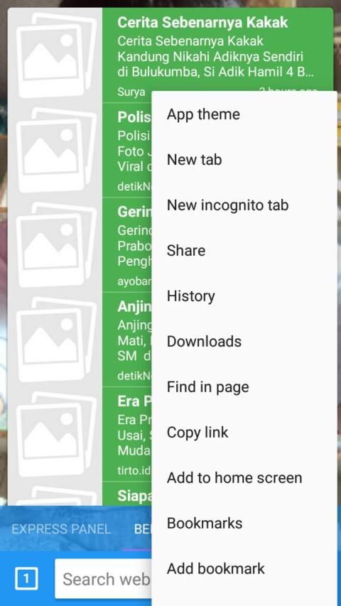 Situs yang diberikan dalam opsi bookmark di tab.
