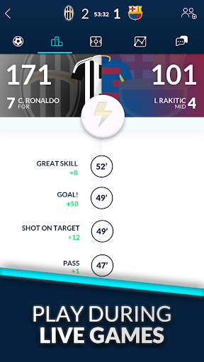 Use your power-ups and trades during the live match to boost your players ⚡