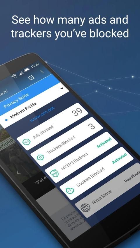 In Medium and High Privacy, ads, trackers and cookies are blocked. This protects your privacy, stops your info being shared and speeds up page load times.